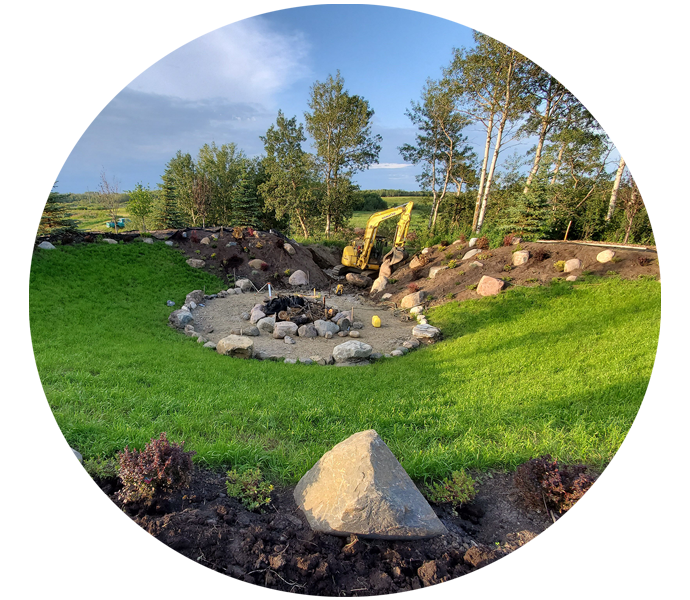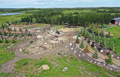 Digging started at the centre of the venue, with all features built off that point—the amphitheatre, a water feature, a fire pit. “It’s the heart of the entire place,” he says. “I wanted natural valleys and areas that collected water, to have the property flow, like nature.”